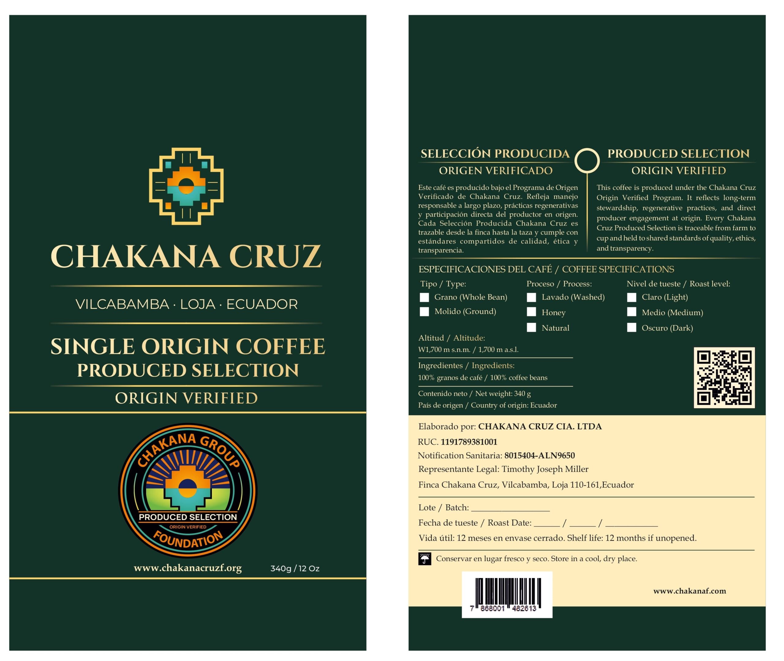 Grown within a 1,700-meter Andean landscape, Chakana Cruz cultivates high-quality Geisha coffee adapted to the local climate and environment. Production is intentionally focused on quality, supporting both the preservation of the land, the development of a skilled, engaged community, and its use for youth education and participation.