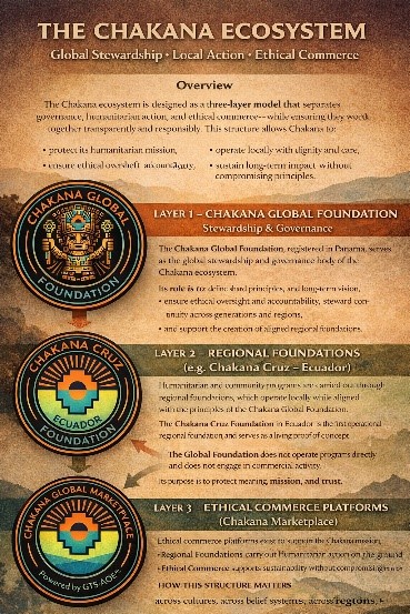 Chakana Cruz operates as part of a broader global framework, aligned with the Chakana Global Foundation, which supports long-term governance, coordination, and the development of the ecosystem at an international level.